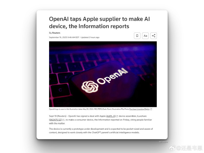 立讯精密和 OpenAI 暂未回应路透社的置评请求。