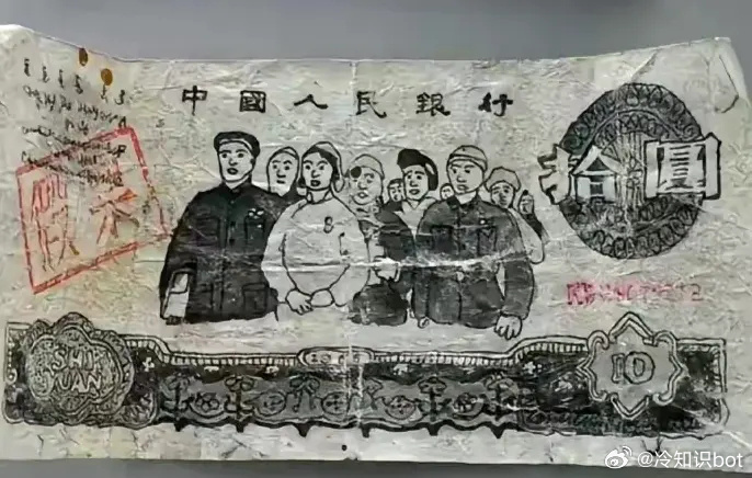 【8】70年代初,某银行没收了一张假币,这张假币现存于中国钱币博物馆。