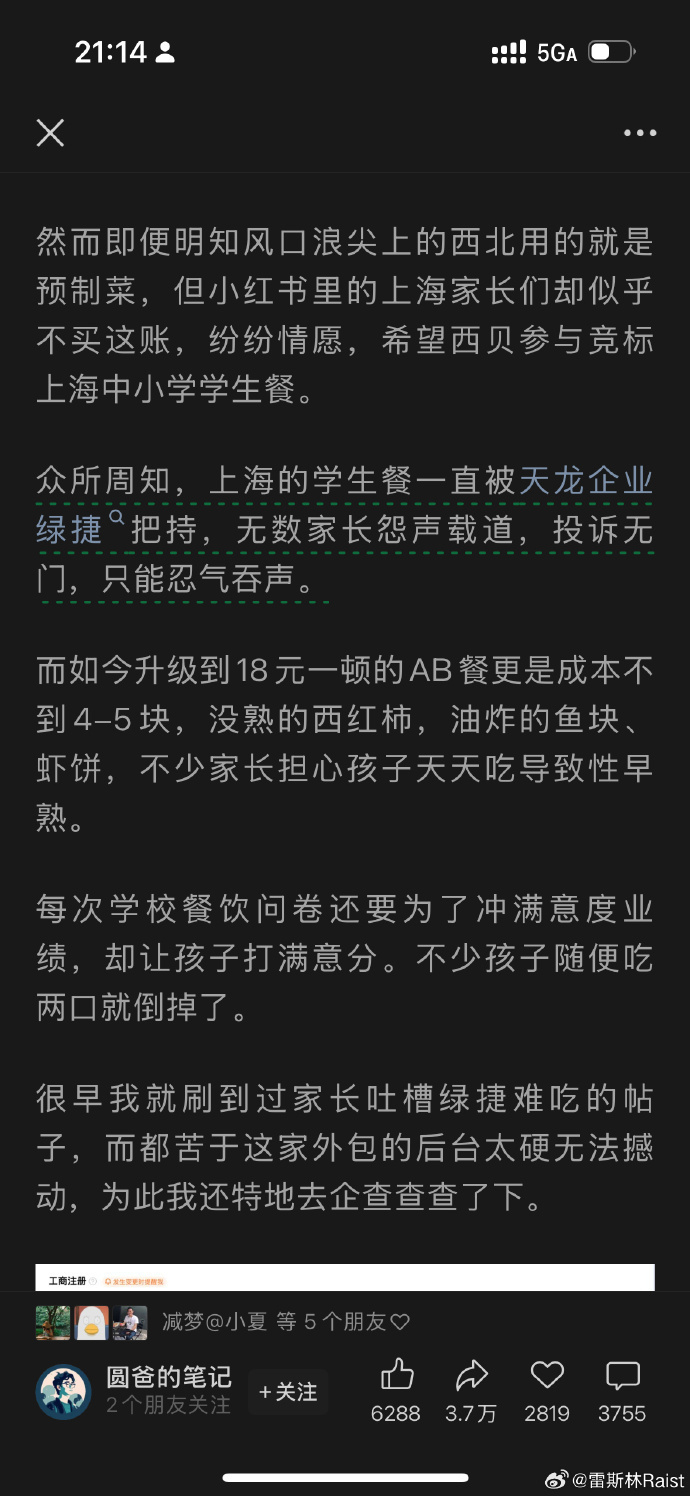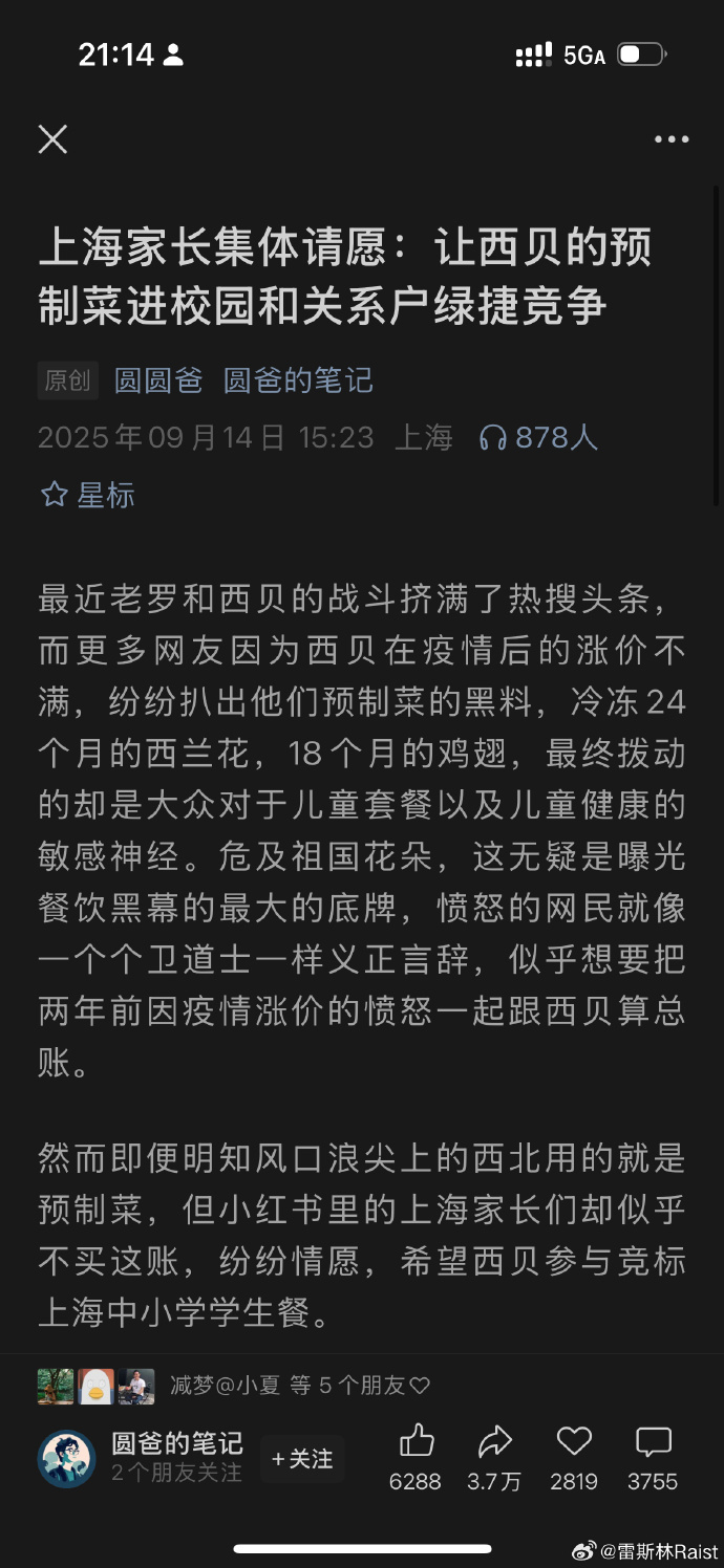 【6】笑死我了,上海家长集体请愿,让西贝的预制菜进校园,让孩子吃西贝预制菜。 现在在朋友圈刷屏了