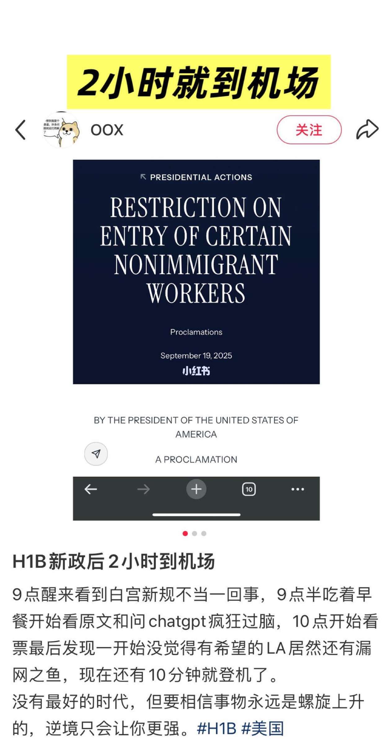 我当时读的时候就发现这里是总统限制外国人入境,他们的雇主在提交h1b申请时必须附带或补充一个 US$100,000 的支付。换句话说,如果你或者公司想要一个新 H-1B 签证,这个费用是必须的,否则申请/入境可能会被拒绝。但是没有提对于已有h1b 签证的人来说要不要这10万美元,我当时觉得90%都是不需要的,但是如果我在国内拿着h1b的话,我不敢赌这个概率,还是要立刻反美。