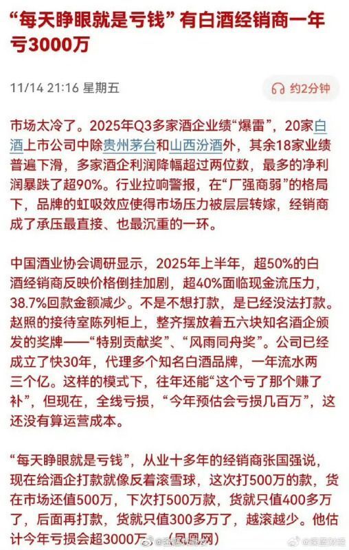 【11】“每天睁眼就是亏钱” 有白酒经销商一年亏3000万