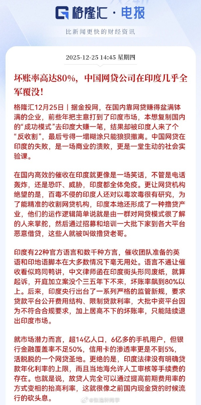 【2】坏账率高达80%,中国网贷公司在印度几乎全军覆没!