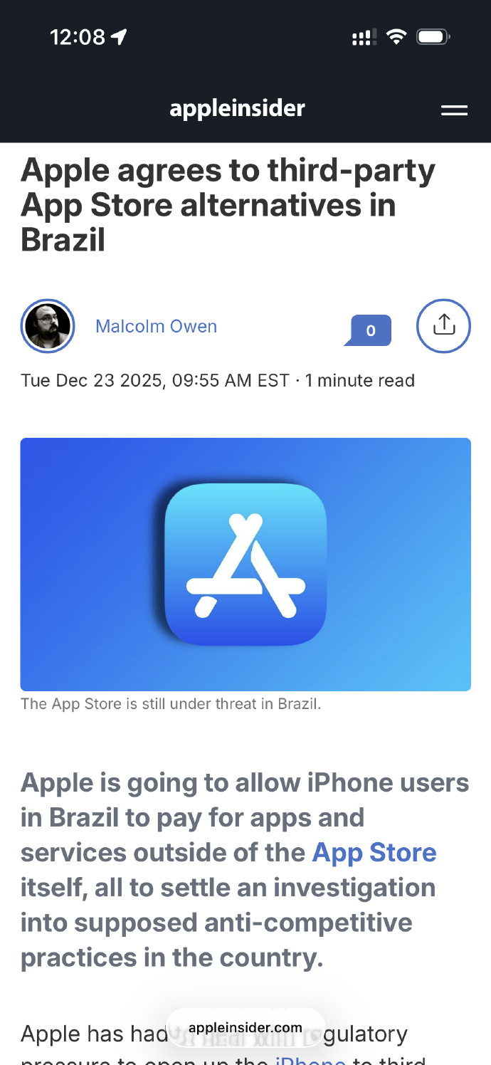 【2】苹果同意在巴西开放第三方应用商店和支付