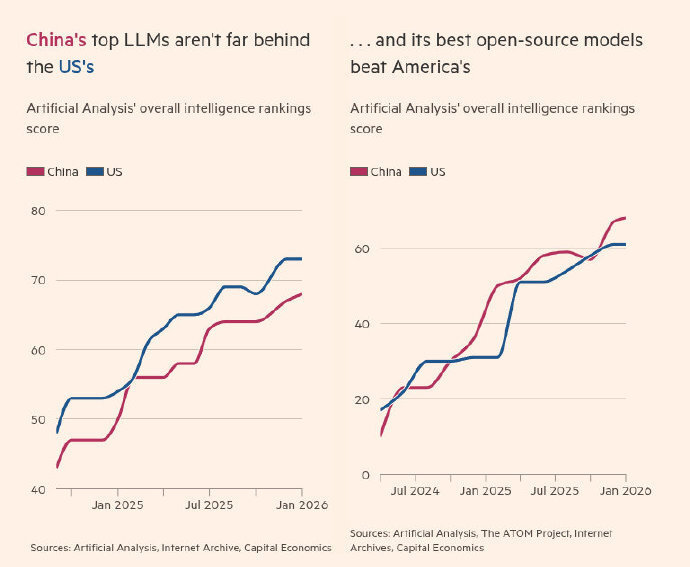 【10】FT:在顶级模型方面,中美差距不大,稳定在3-6个月的代差,而在开源模型方面,中国已经持续保持领先。