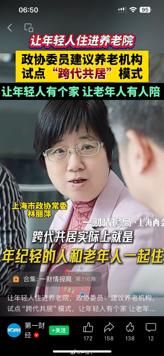 【6】上海年轻人租房压力大,怎么办?政协委员想出妙招:住养老院,陪伴、服务老人,以此减免房租,一举多得