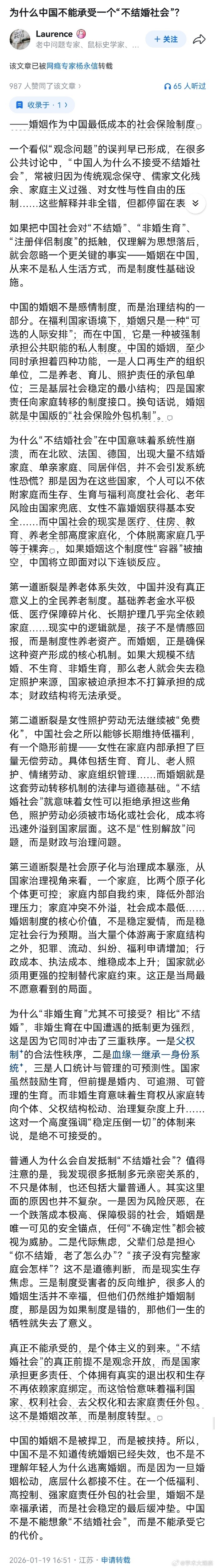 【17】@学术大观察 为什么中国不能承受一个“不结婚社会”? @史海悠游:归根结底,公民福利水平太低。