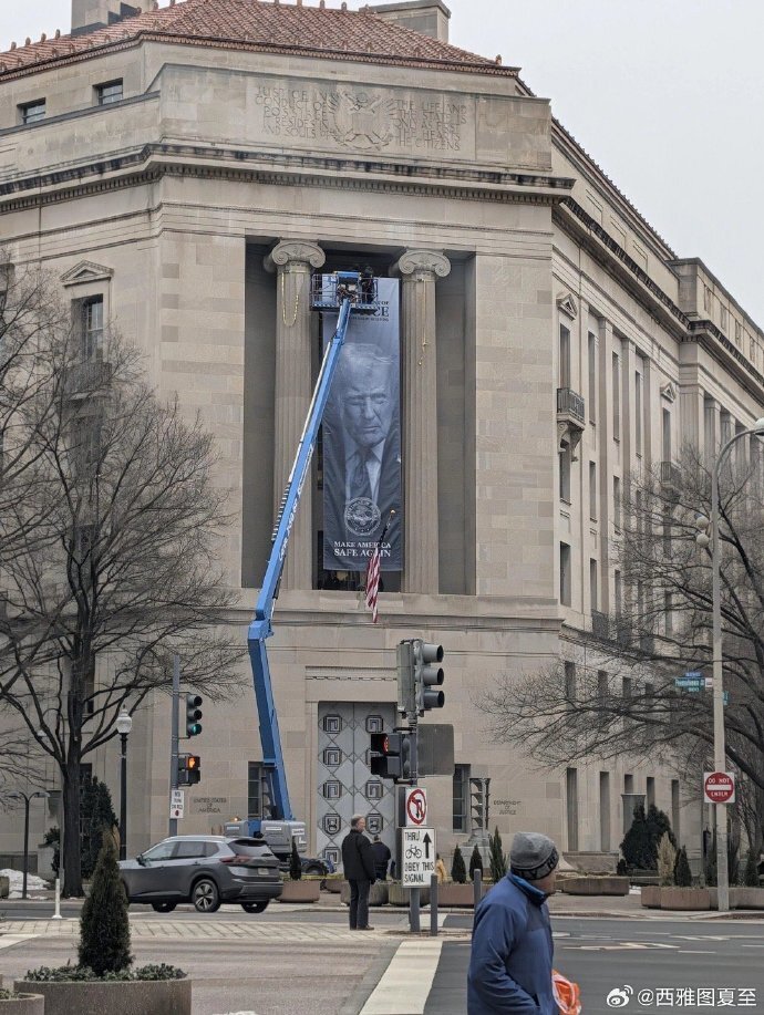 【19】美国司法部大楼,今天悬挂条幅:爱好和平的总统,让美国更安全! 希拉里谈川普: “川普的乌克兰政策非常恶劣!乌克兰为我们而战,为我们的价值、安全而浴血奋战,而川普却与俄普媾合,川普背叛了西方、背叛了北约原则、背叛了大西洋宪章、背叛了联合国人权宣言、背叛了整个人类的共同价值!”