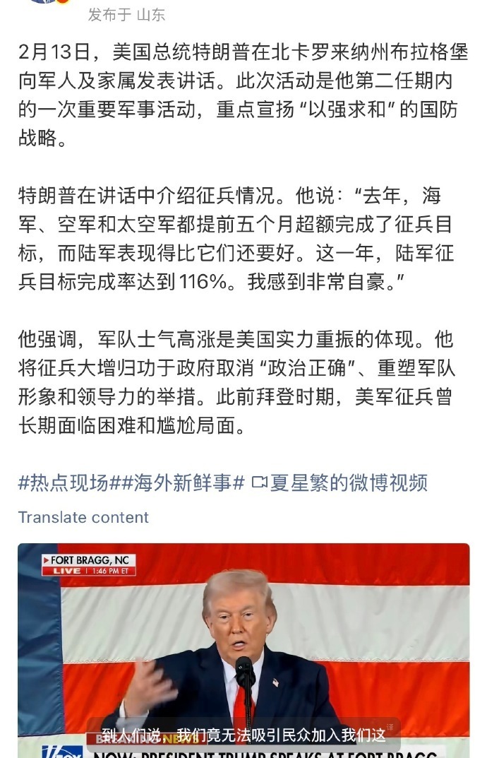 【10】这篇华川粉的微博特别能说明他们的思维方式,完全用新闻联播的方式来描述川普,“发表讲话”,“他强调”……内容空洞得可怕。