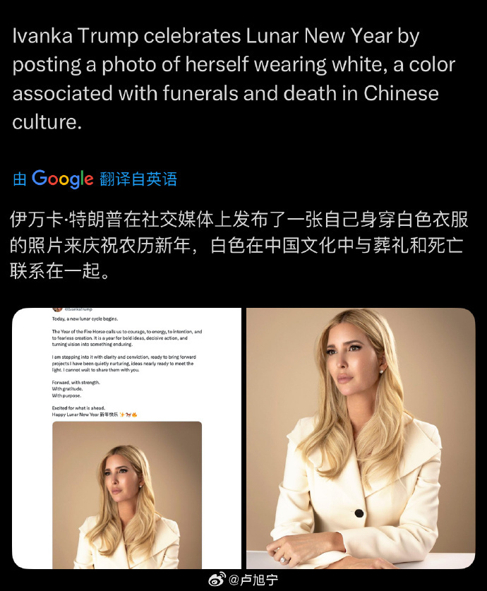 【13】伊万卡发图庆祝春节遭嘲讽:穿了件白衣服
