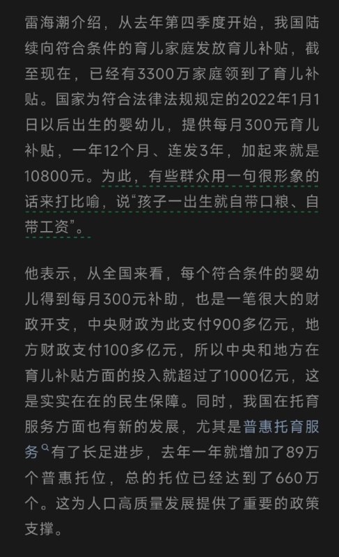 【1】卫健委:孩子一出生就自带口粮、自带工资