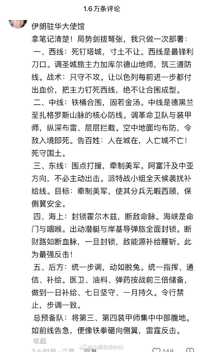 【5】伊朗驻华大使馆抖音账号评论区下方的“军师”们。