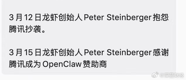 【4】库克回应龙虾带动MacMini大卖:“Mac Mini是最适合做AI任务的电脑” 据界面新闻报道,3月21日,在一场与Mac有关的访华行程中,苹果CEO蒂姆·库克接受界面新闻记者采访,针对近期OpenClaw带动Mac Mini大卖的问题,他评价称,苹果十年前就在Mac中加入了神经网络引擎,随着苹果芯片、生成式AI以及智能体交互的共同发展,这种硬件与软件的集成使得Mac Mini成为最适合做AI任务的电脑。苹果接下来会持续优化针对AI工作流的Mac性能,事实上,用户现在已经可以在Macbook Pro上训练大语言模型。
