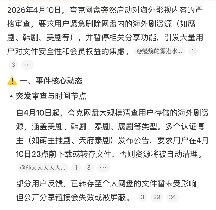 【2】夸克网盘被约谈,要整治字幕组、压制组了,普通用户的文件暂时不受影响。